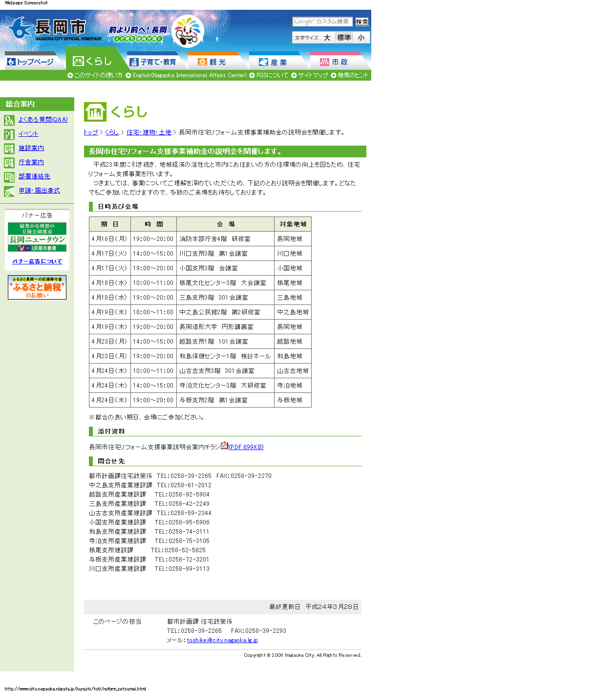 平成24年度 長岡市住宅リフォーム支援事業のご案内&説明会の開催