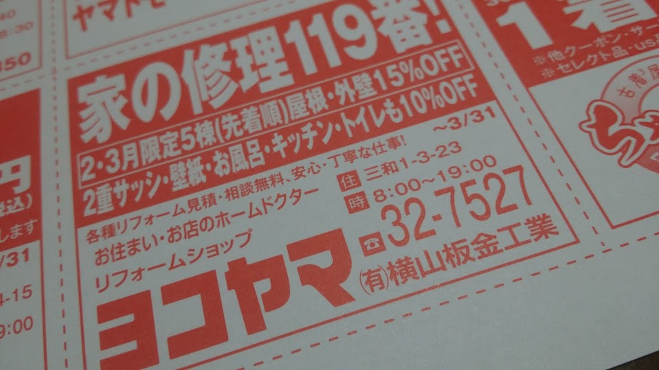 2月1日、新潟日報の折り込みで、宮内地区限定の「ミヤウチクーポン」が配布されました。