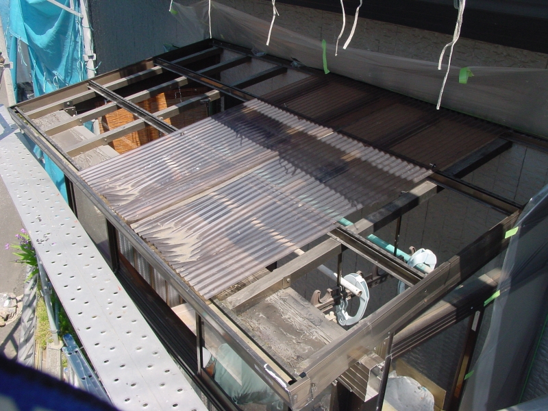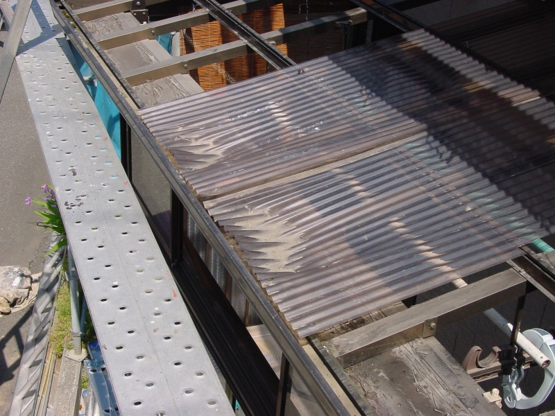 ポリカ波板(ユーピロン)を支えるスパンが、